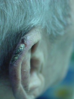 Şekil 1. Kulak kepçesinde kanseri olan iki hasta.